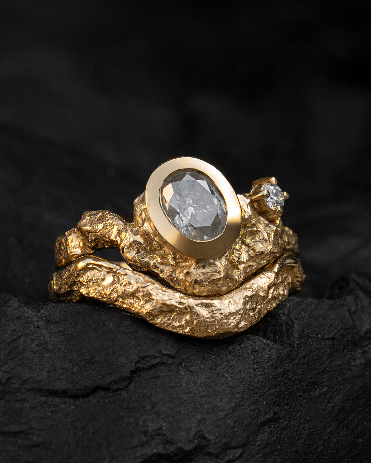 From tactile pieces in gold and silver for everyday wear, to non-traditional wedding and engagement rings featuring black or salt & pepper diamonds; each creation is imbued with intention. Discover a connection to your own individuality through enduring, unconventional design.
