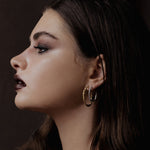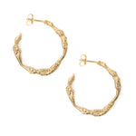 Medium solid gold hoop earrings, hand-carved with undulating, knotted textures drawn from old vines. A perfect balance of presence and wearability.