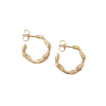 Small solid gold hoop earrings with a sculpted, organic texture inspired by weathered vineyard vines. A refined staple with a rugged edge.