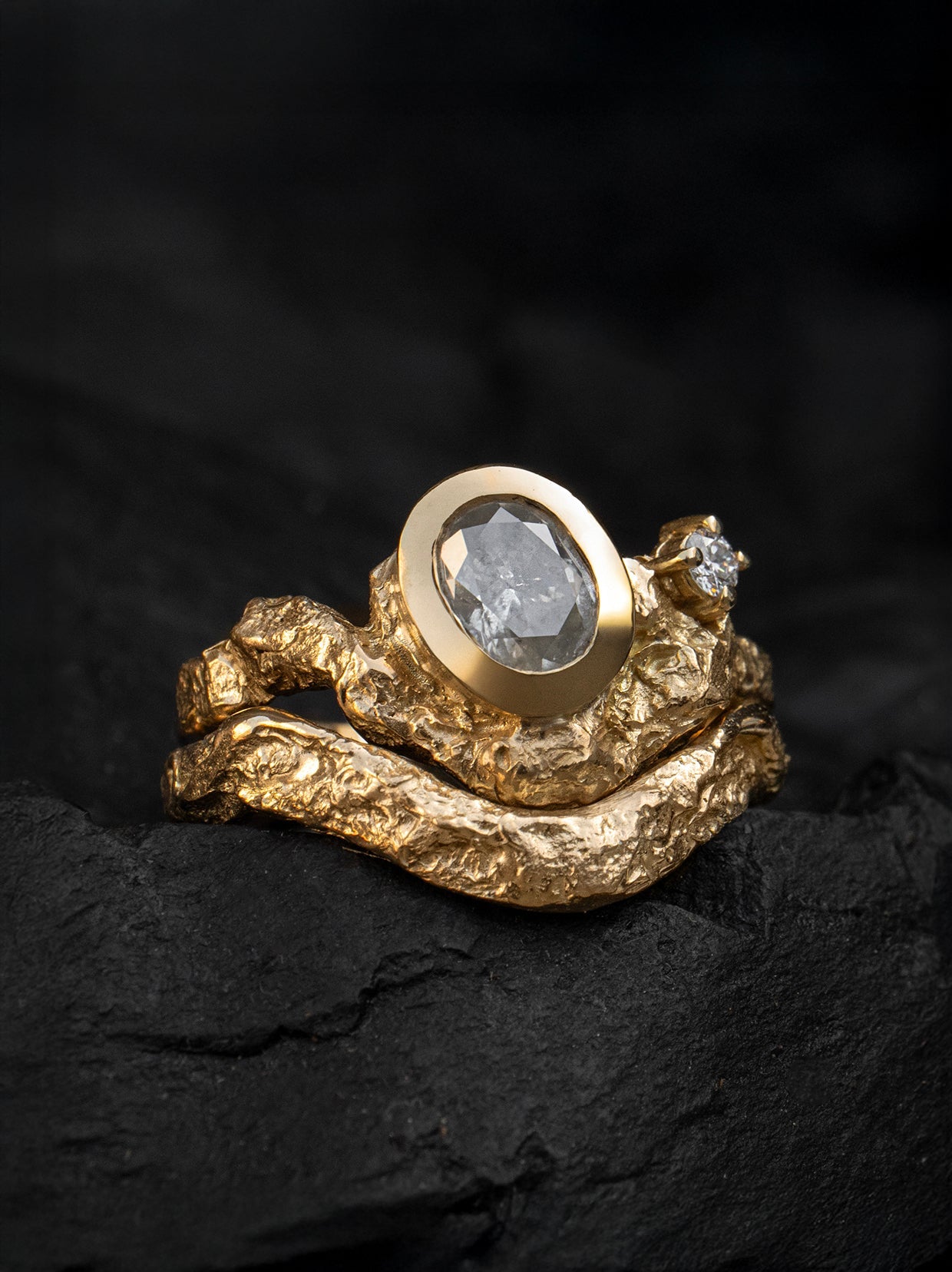 From tactile pieces in gold and silver for everyday wear, to non-traditional wedding and engagement rings featuring black or salt & pepper diamonds; each creation is imbued with intention. Discover a connection to your own individuality through enduring, unconventional design.