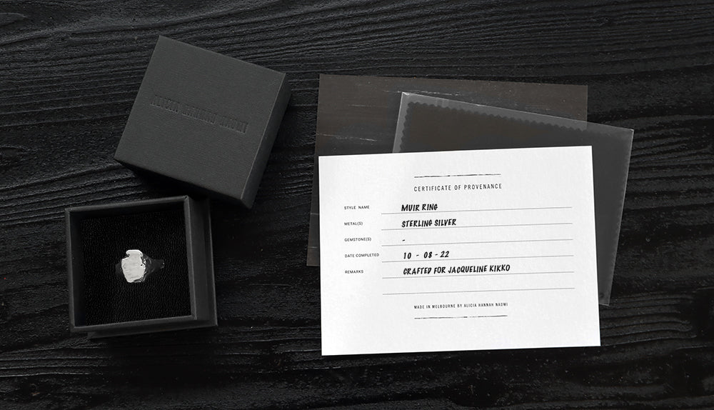 The Certificate is a lovely token of ownership for the recipient and helps them understand that the newest addition to their jewellery collection was thoughtfully crafted especially for them.