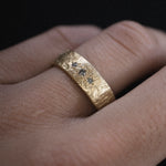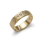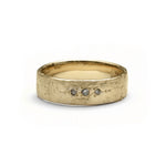 Textured ring band with three salt and pepper diamonds. Externally this piece has a gentle satin finish, inside it is highly polished.