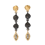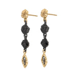 Long mixed-metal drop earrings featuring hand-carved Blackened Silver pebbles, each accented with a custom rose-cut Salt & Pepper marquise diamond and set in solid yellow gold. A study in contrast—these versatile layering earrings are rugged yet refined, organic yet deliberate.