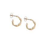 Mini solid gold hoop earrings, shaped by the natural textures of aged vines. Textured yet refined, an effortless staple for any collection.