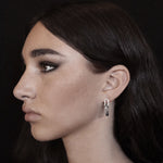 A study in contrast, these hand-carved drop earrings feature a single polished oval link paired with an eroded, textured counterpart. The interplay of smooth and rugged surfaces creates a bold yet minimal composition—simple in form, striking in presence. Designed for those who appreciate raw refinement in its purest expression. Pictured in Blackened Silver finish, also available in Bright Silver.