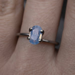 Oval brilliant cut natural opalescent sapphire in powder blue with very gentle paler blue undertones and subtle pink flashes from Yen Luc, Vietnam.