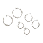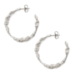 Large hand-carved hoop earrings with an undulating, rugged surface, inspired by the gnarled forms of old vines. A bold yet effortless statement. Pictured in Bright Silver finish, also available in Black Silver.